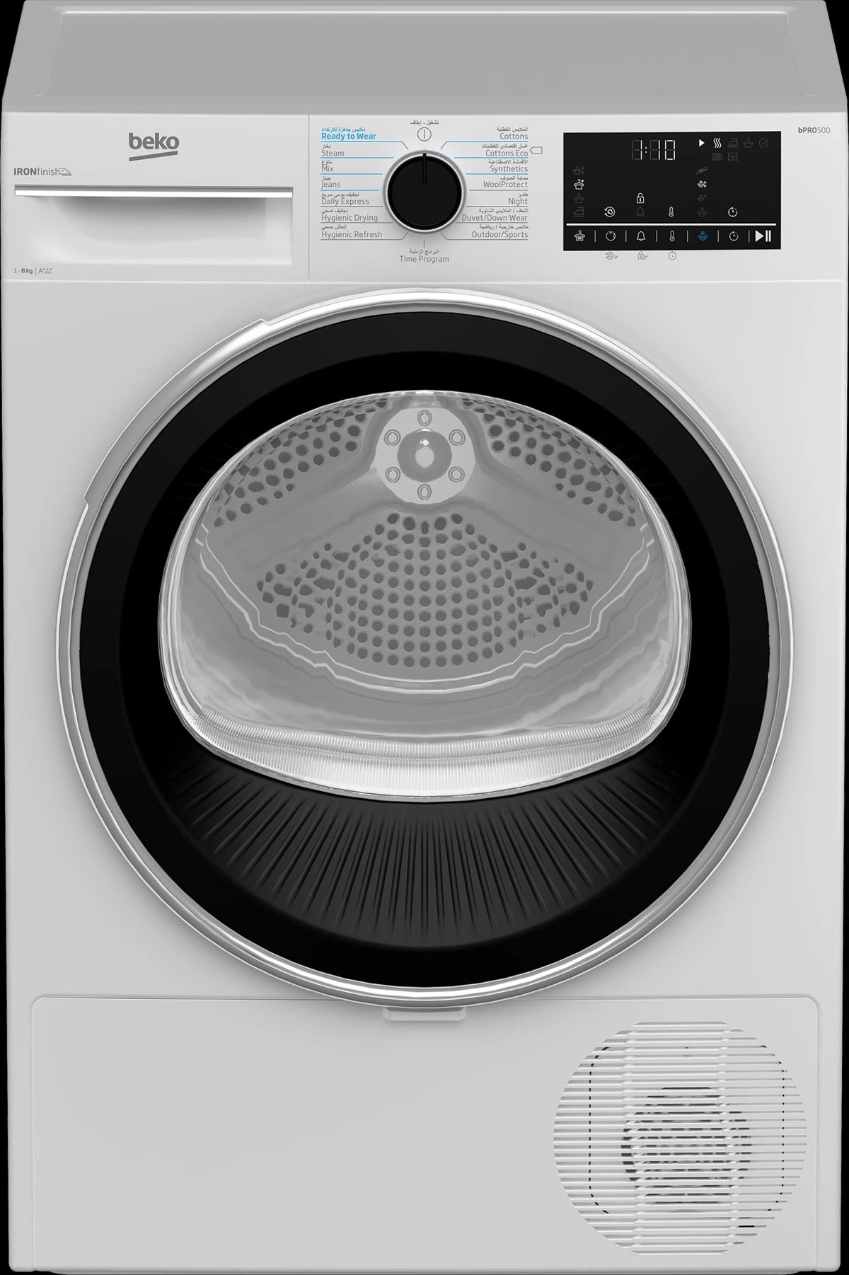 Specification Compressor 10 Years Warranty Yes Heat Pump Yes Inverter Yes Capacity 8 kg Number of Programs 15 Origin Turkey Energy Efficiency Class A+++ (-10%) Display Screen Control Manual Color White Brand Beko Dimensions (W x H x D) (cm) 59.8 * 84.6 * 67.2