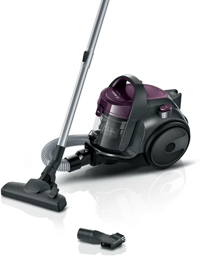 Bosch BGC05AAA1 Series 2 Bagless Vacuum Cleaner 700 W 1.5 L Purple Compact bagless cylinder vacuum with 700 W HiSpin motor, PureAir hygienic filter and 1.5 litre dust box. Bagless cylinder 1.5 L 700 W HiSpin motor Operating radius up to 9 m BGC05AAA1 is a compact bagless vacuum cleaner that delivers strong suction with low energy consumption. The innovative HiSpin motor, PureAir hygienic filter and efficient dust separation system help keep your floors clean and the exhaust air fresh, while the lightweight body makes it easy to move and store. Power700 W Dust capacity1.5 L bagless RadiusUp to approx. 9 m