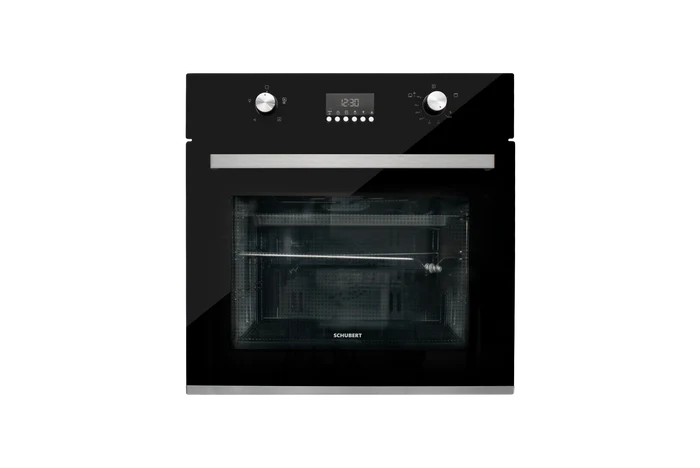 SCHUBERT GENT 708 Built In Gas Oven Elec Grill 60cm 60Lit Black,Handel +Knobs Silver Digital Screen-Auto-Off Grill+Oven