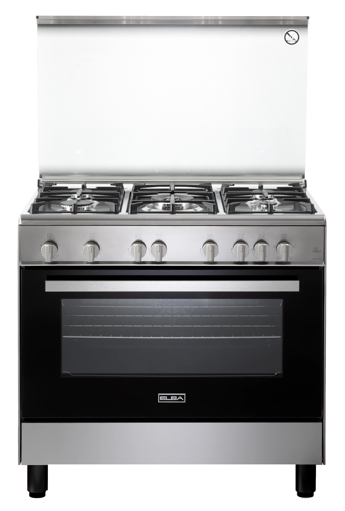 Elba Gas Cooker 90 cm Stainless Steel Cast iron pan supports 5 gas burners Full Safety with Fan