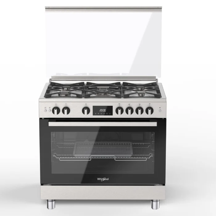 Whirlpool WR90 GGF 33229 XNA Free Stand Gas Cooker Full-Safety 90cm Soft Close LCD Catalytic S.Steel