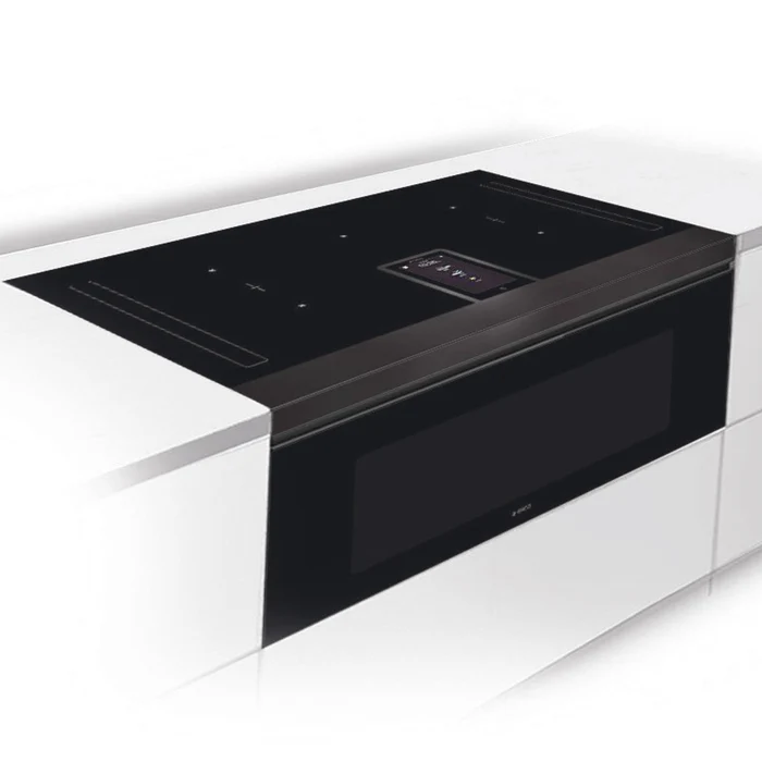 All-in-one product with CombiSteam oven, 5-zone hob, and extractor hood for vented operation - With built-in motor - Black - Width 900 mm